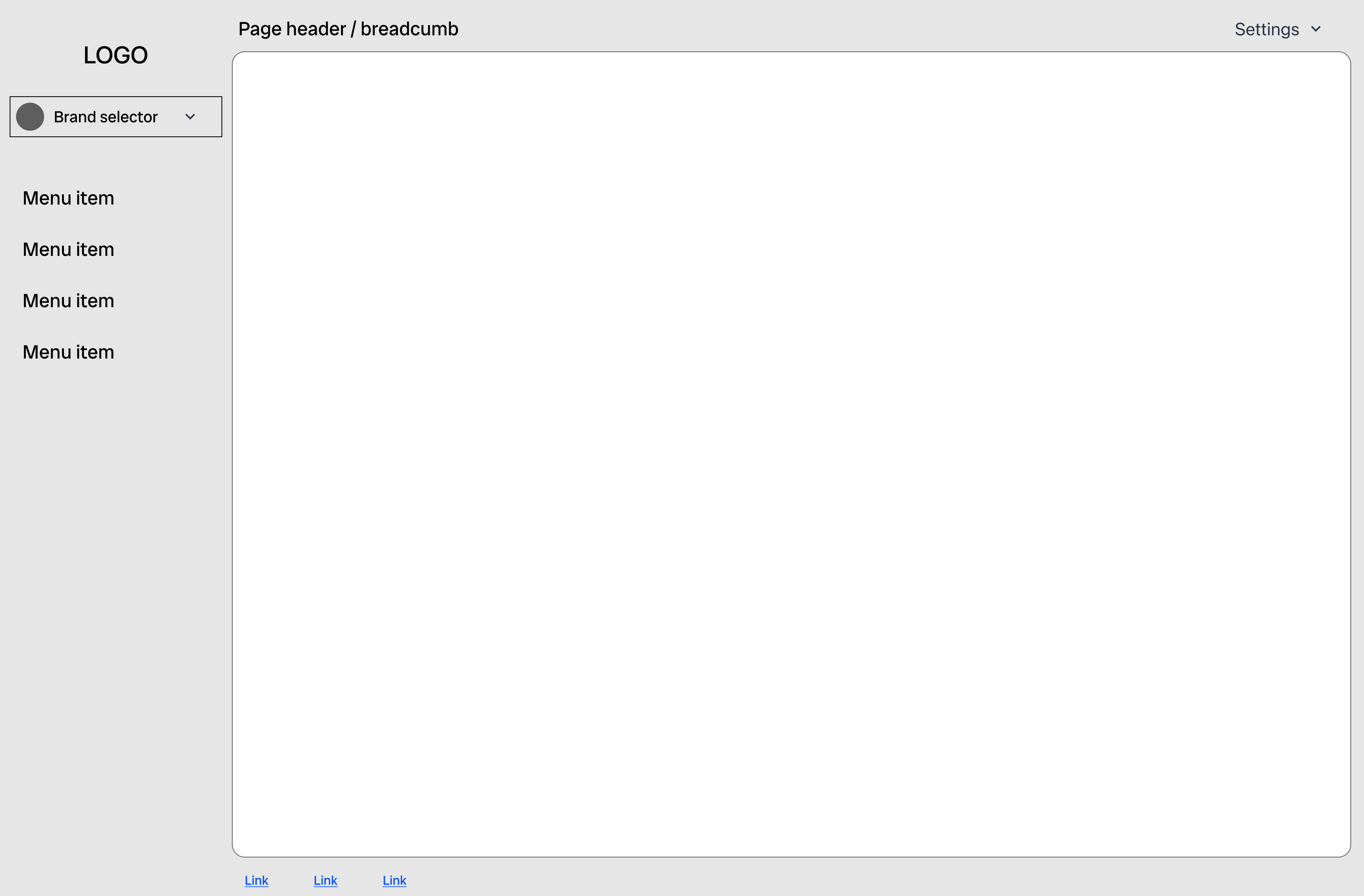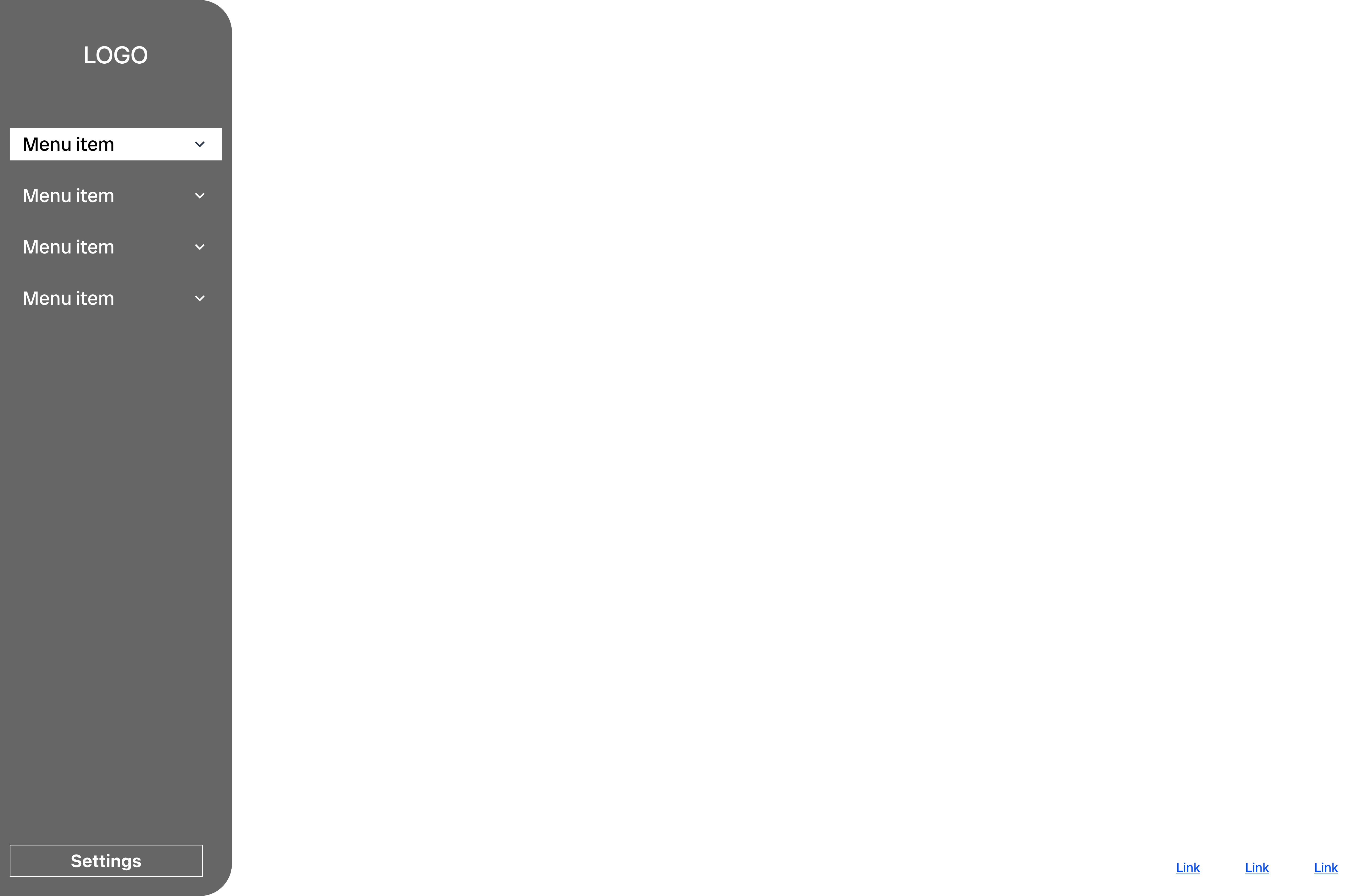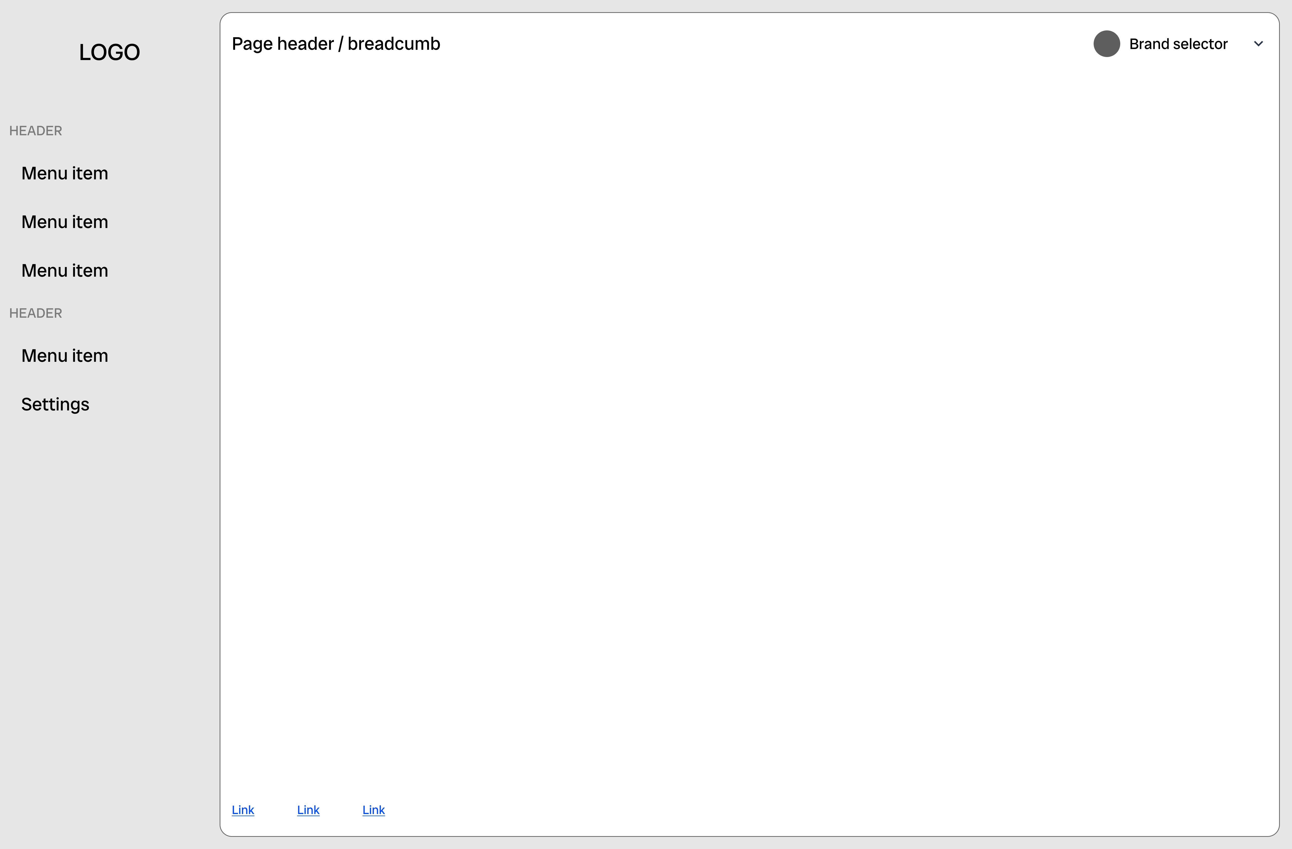 Different options for general structure and navigation wdere considered, but from our research a main left navigation side bar was common and felt the most appropriate for future growth of the dashboard. This would free up the page header to be used for extra content, and provide space for future pages to be added underneath.