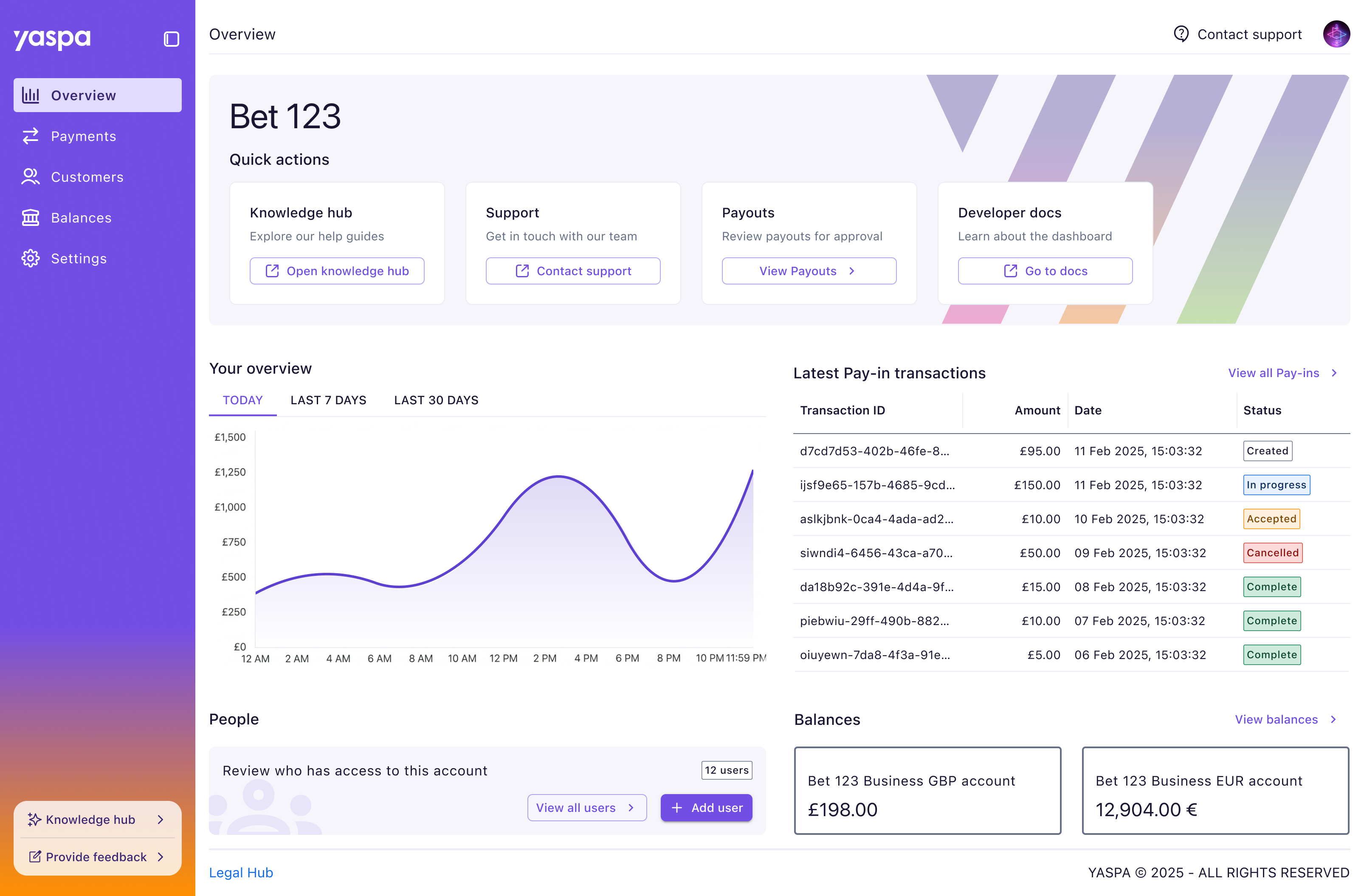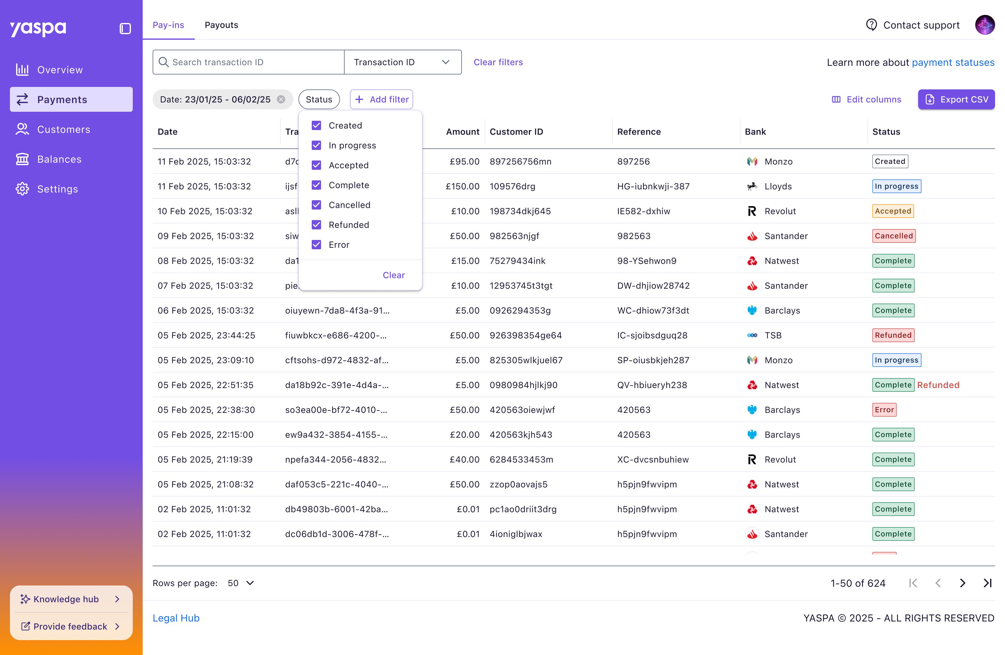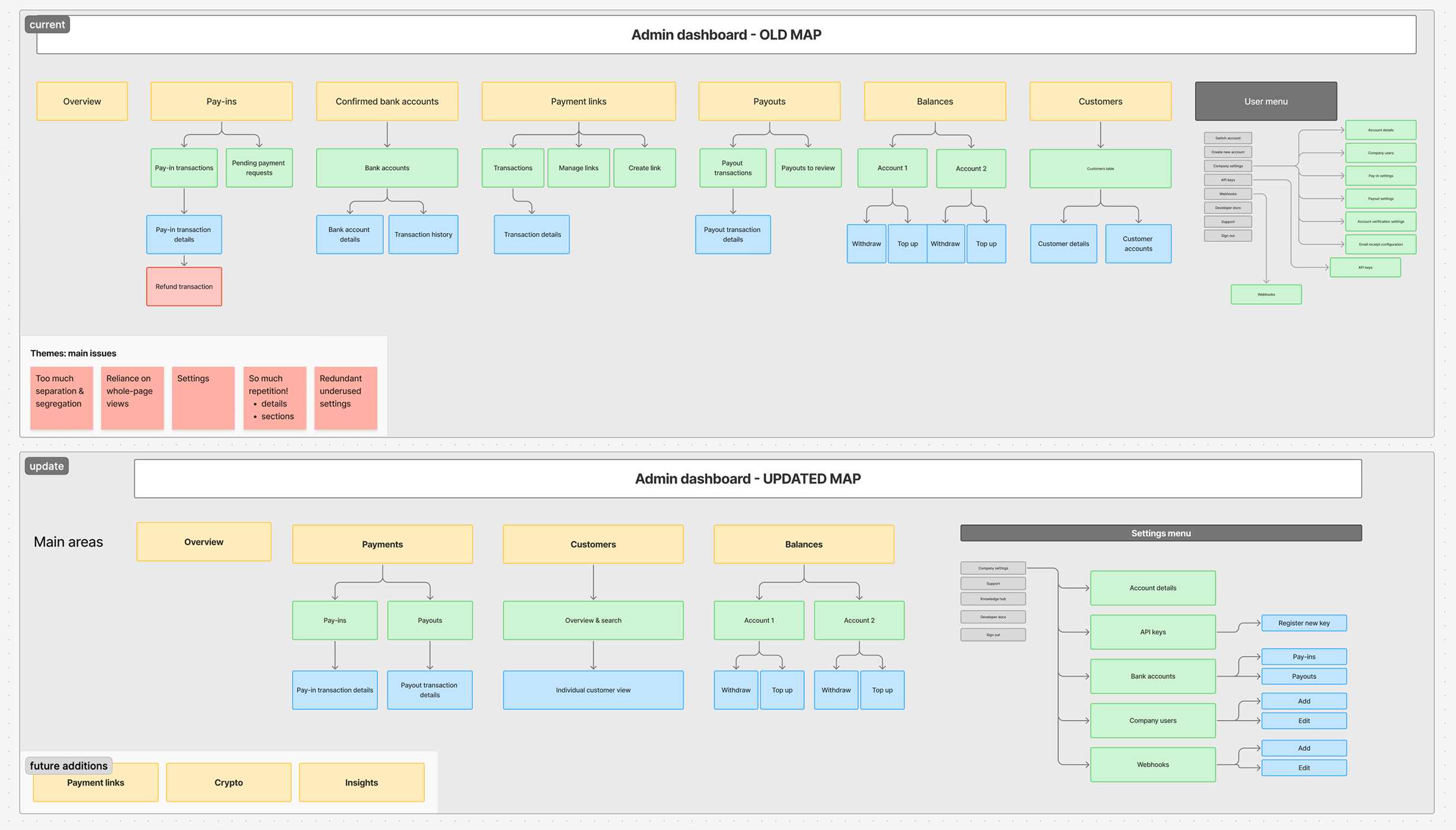 The admin dashboard at Yaspa is a crucial B2B communication tool, documenting data on open banking transactions. Originally developer-built area, with only a few UX patterns in mind, it was in much need of a refresh.